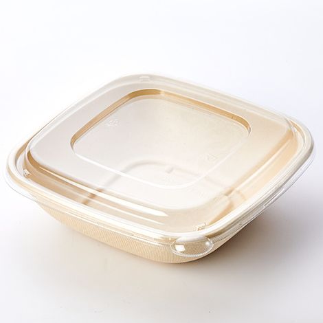 24OZ Square Pulp Food Bowl With Clear Lid